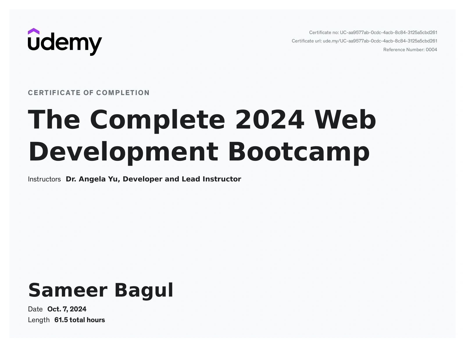 Full-Stack Web Development & Web3 Certification – Dr. Angela Yu (Udemy)